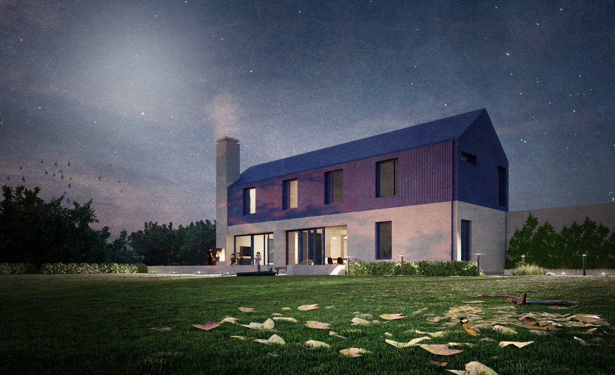 The architectural vision centres on a restrained form inspired by local vernacular buildings. The narrow linear plan allows natural light to penetrate deeply while enhancing views of the surrounding landscape.