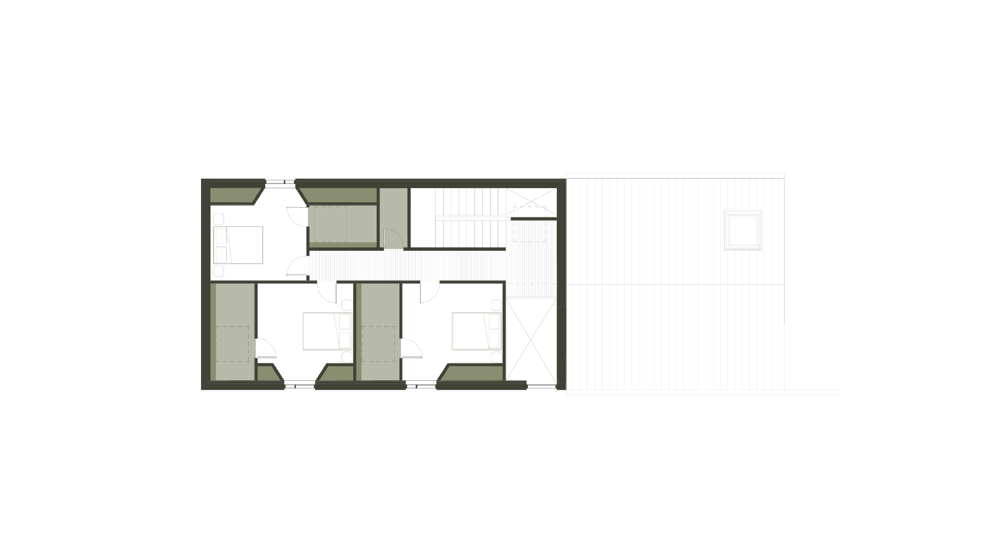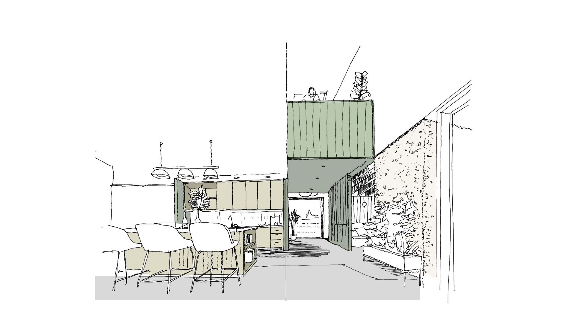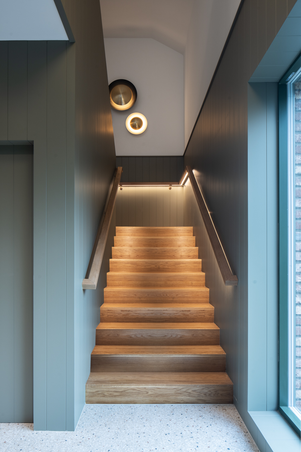 The stepped elevation references vernacular rural forms. Internally, durable materials are softened with warm colours and bespoke joinery. Varying volumes introduce a sense of grandeur and playfulness for guests.